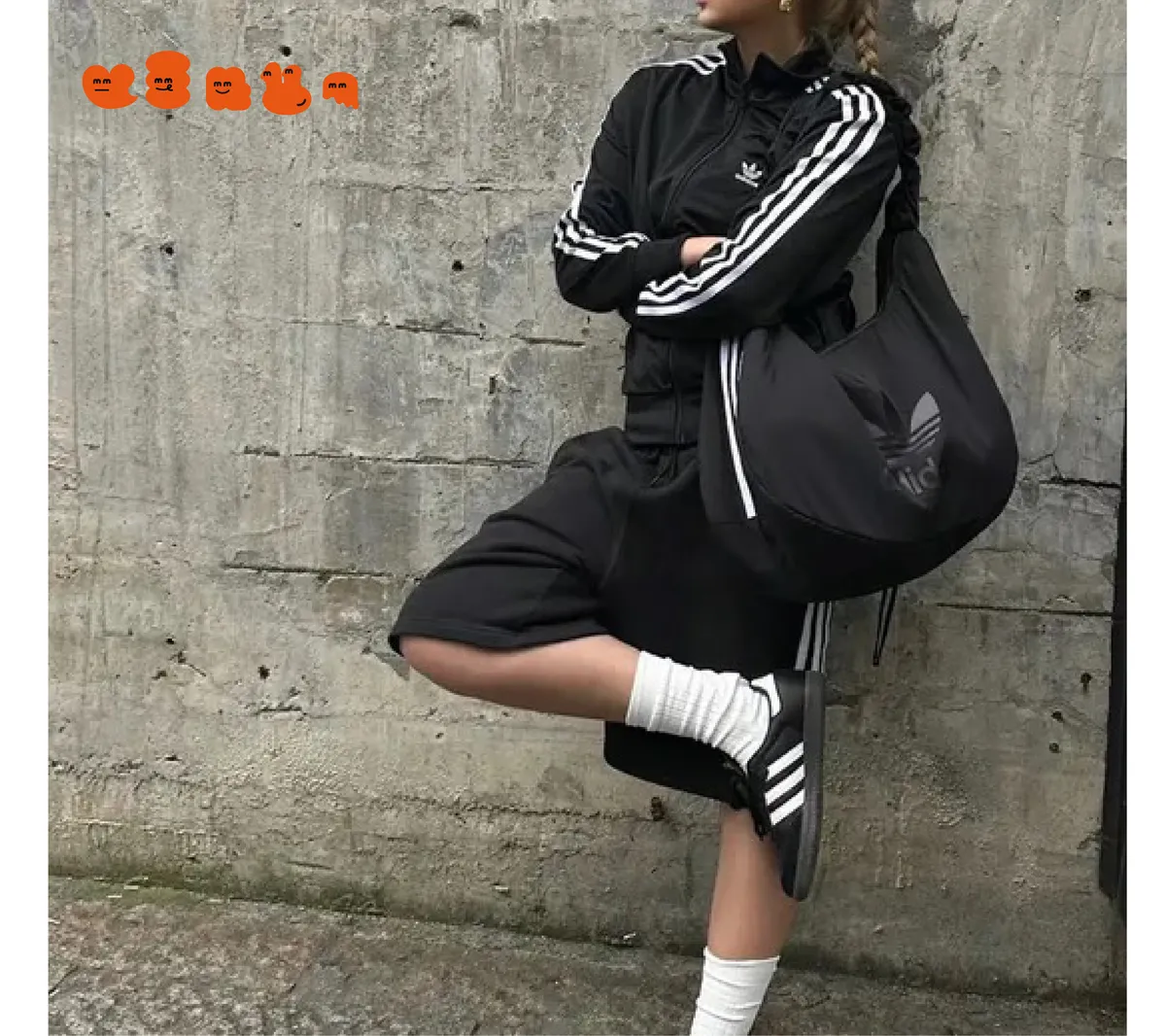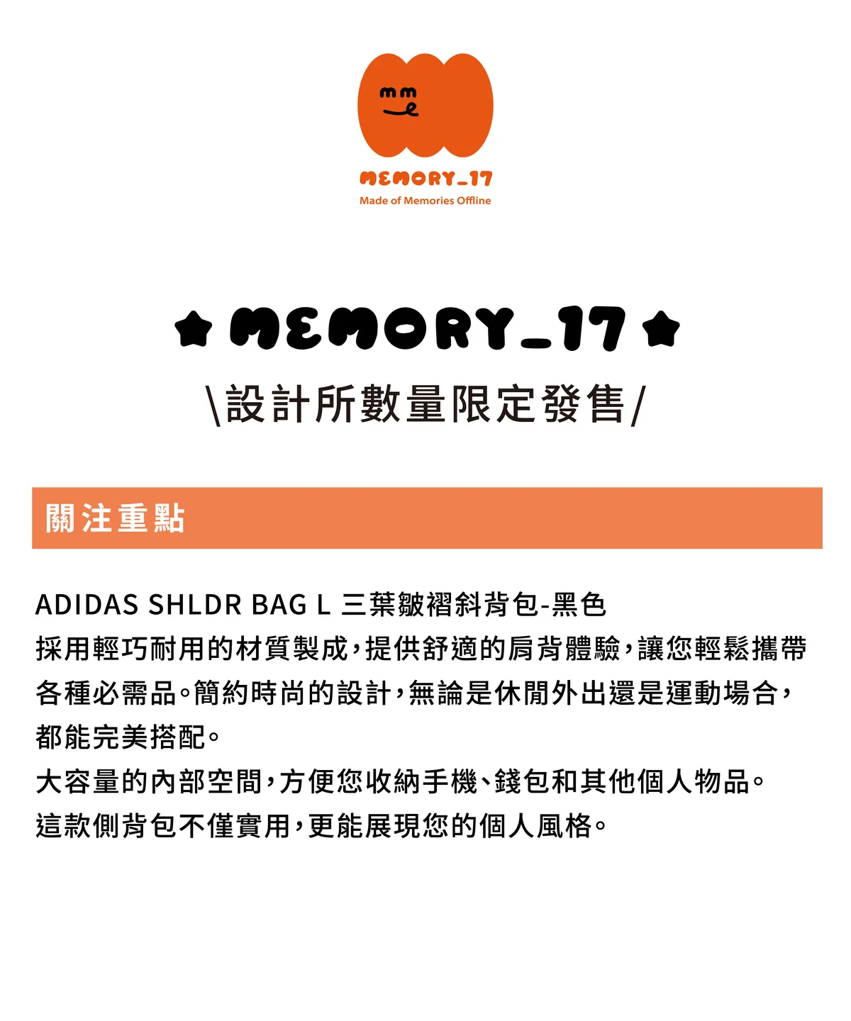 【ADIDAS SHLDR BAG L】三葉皺褶斜背包 - 黑 JP0145