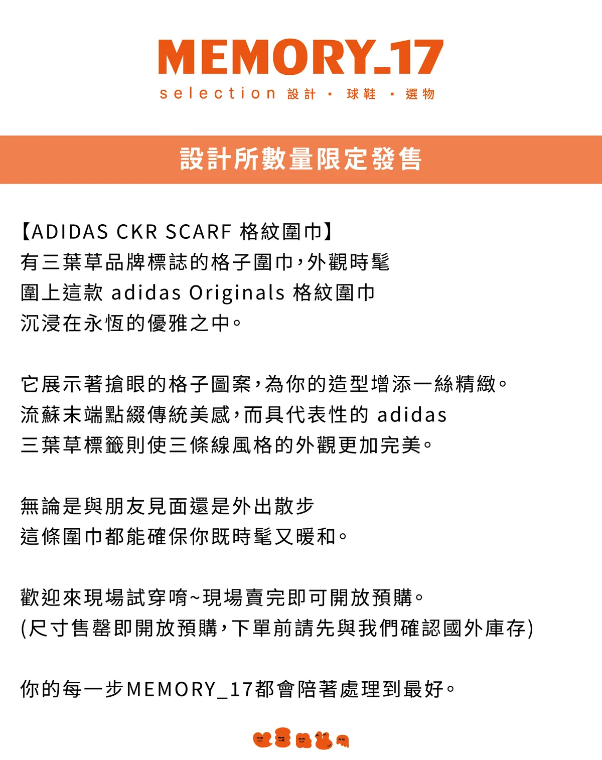 【ADIDAS CKR SCARF】格紋圍巾 KV6601