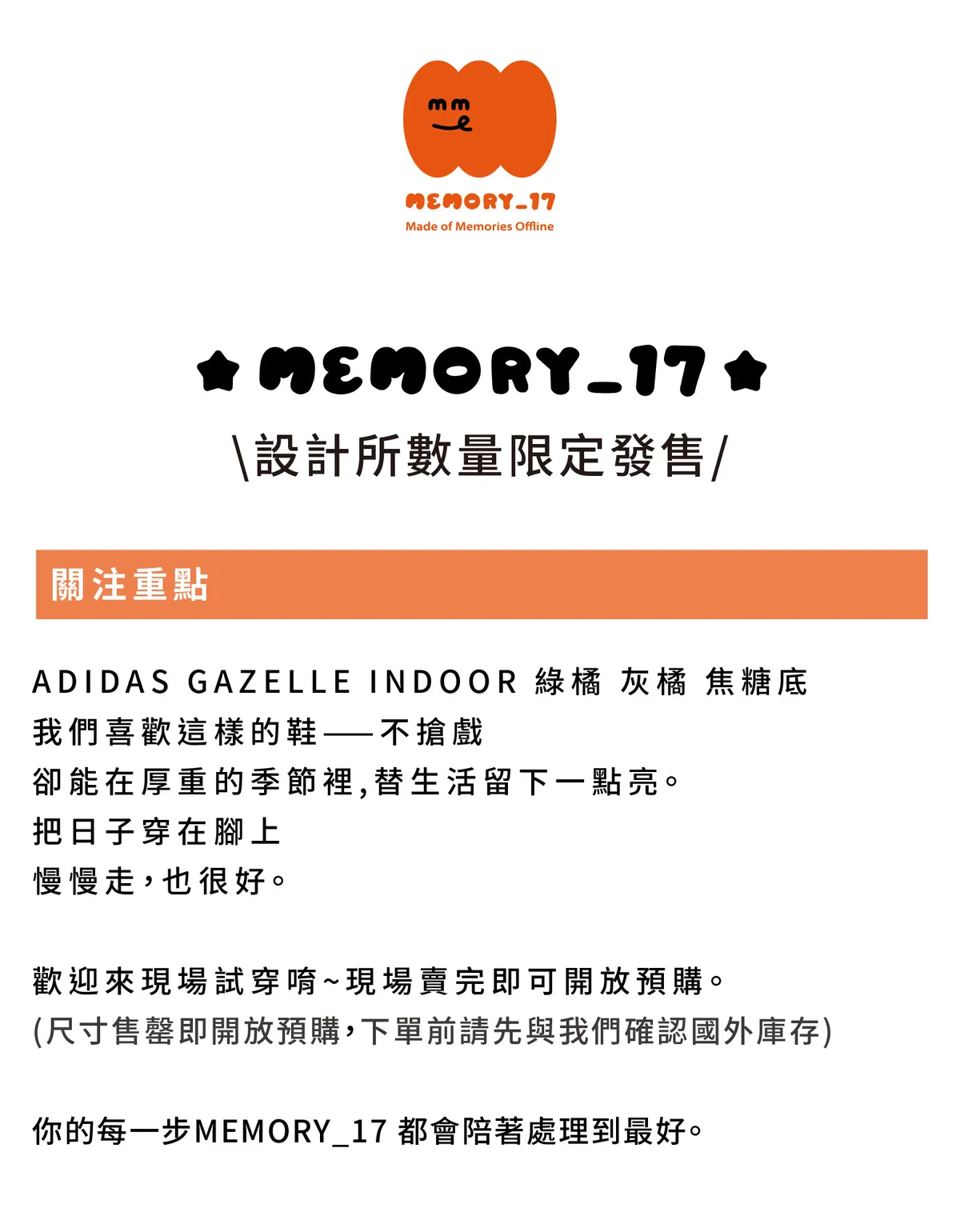 【ADIDAS GAZELLE INDOOR】蜜香橘·奶白JQ0011
