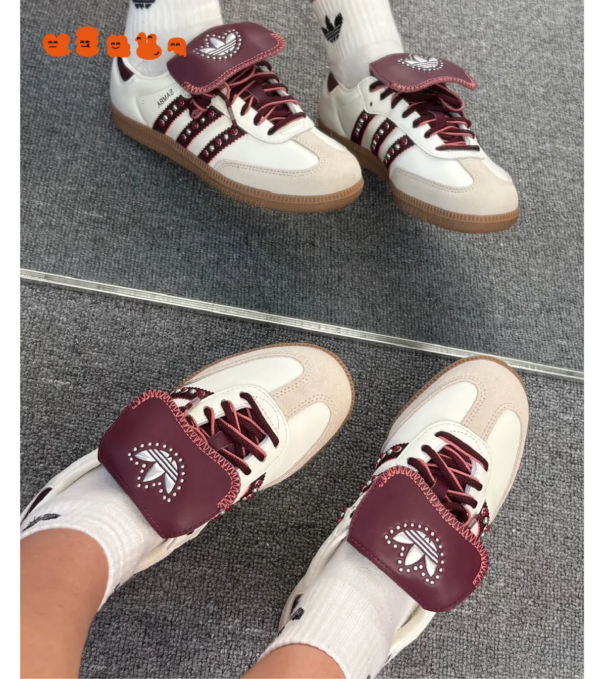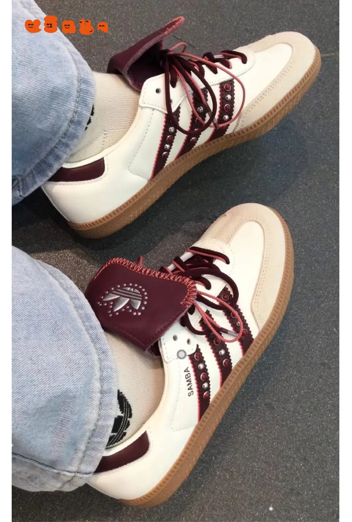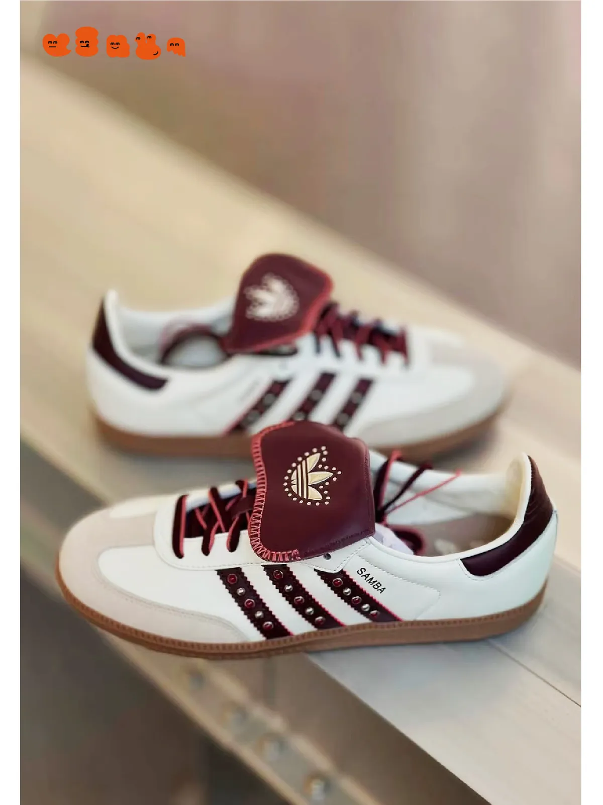 【ADIDAS ORIGINALS SAMBA LT W】酒紅米白卯釘翻蓋鞋舌JQ9714