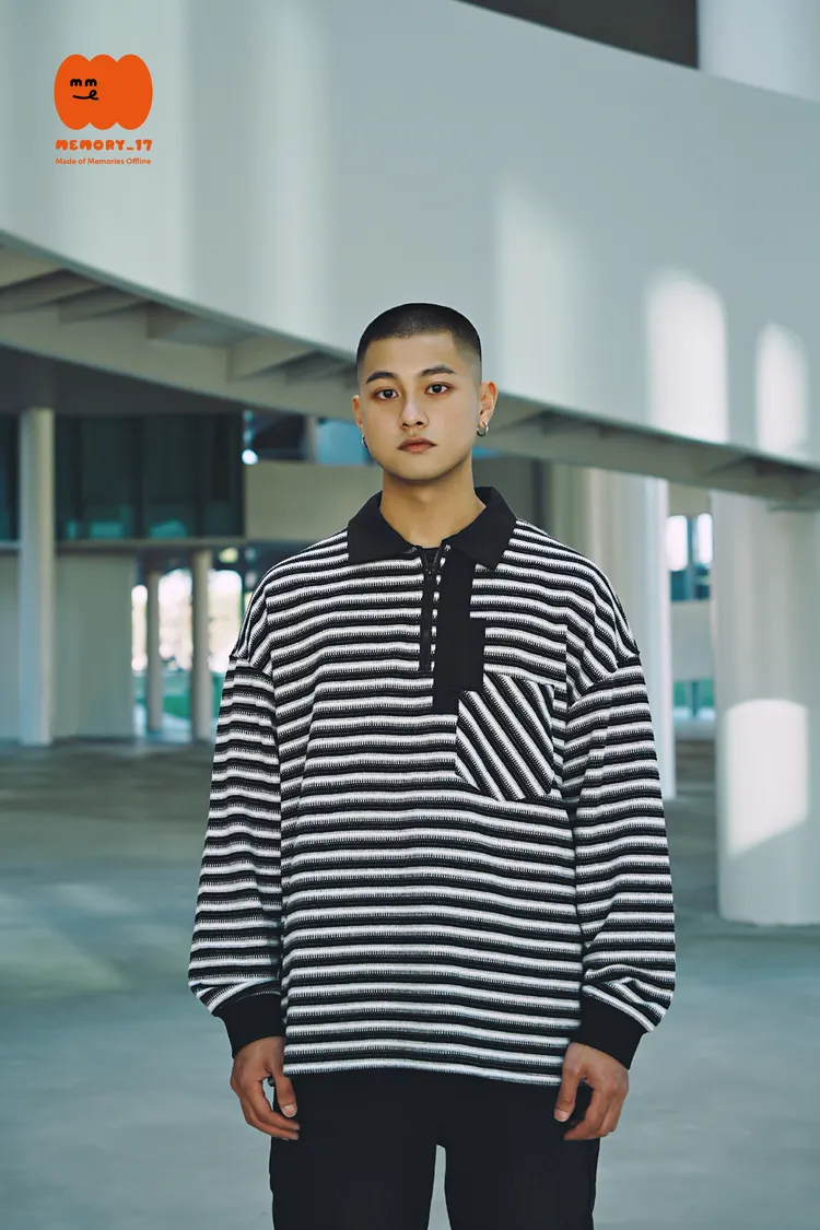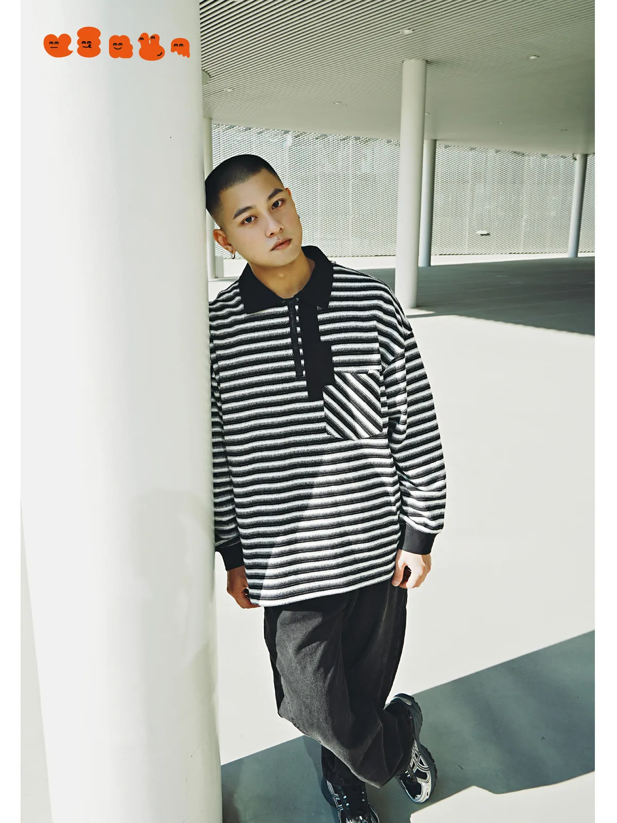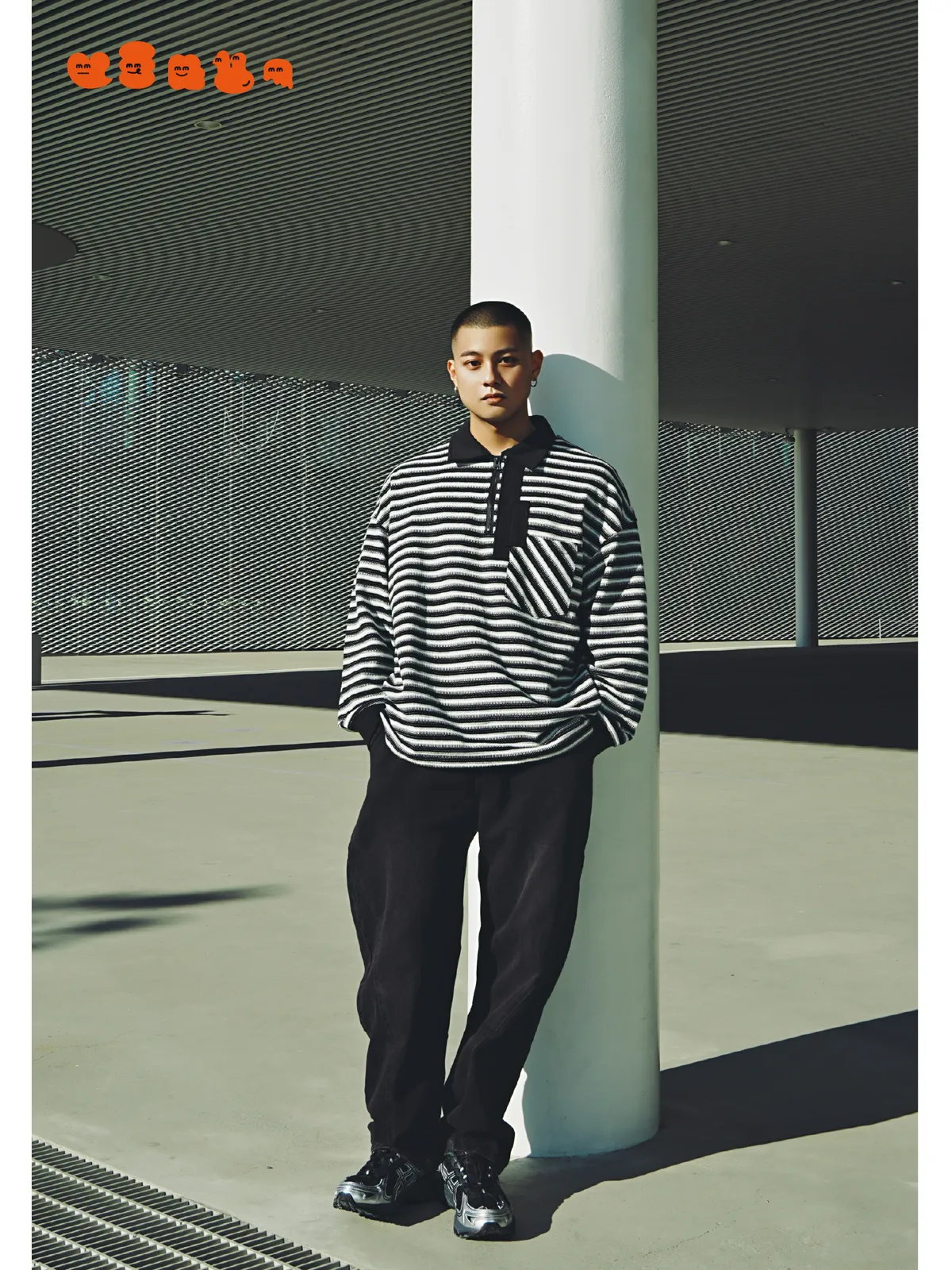 【KOREA VINTAGE KNIT POLO TEE】KOREA撞色復古針織翻領T