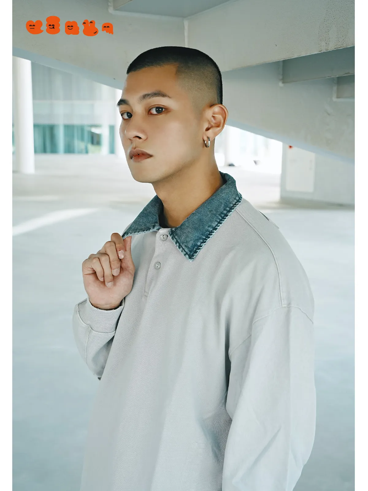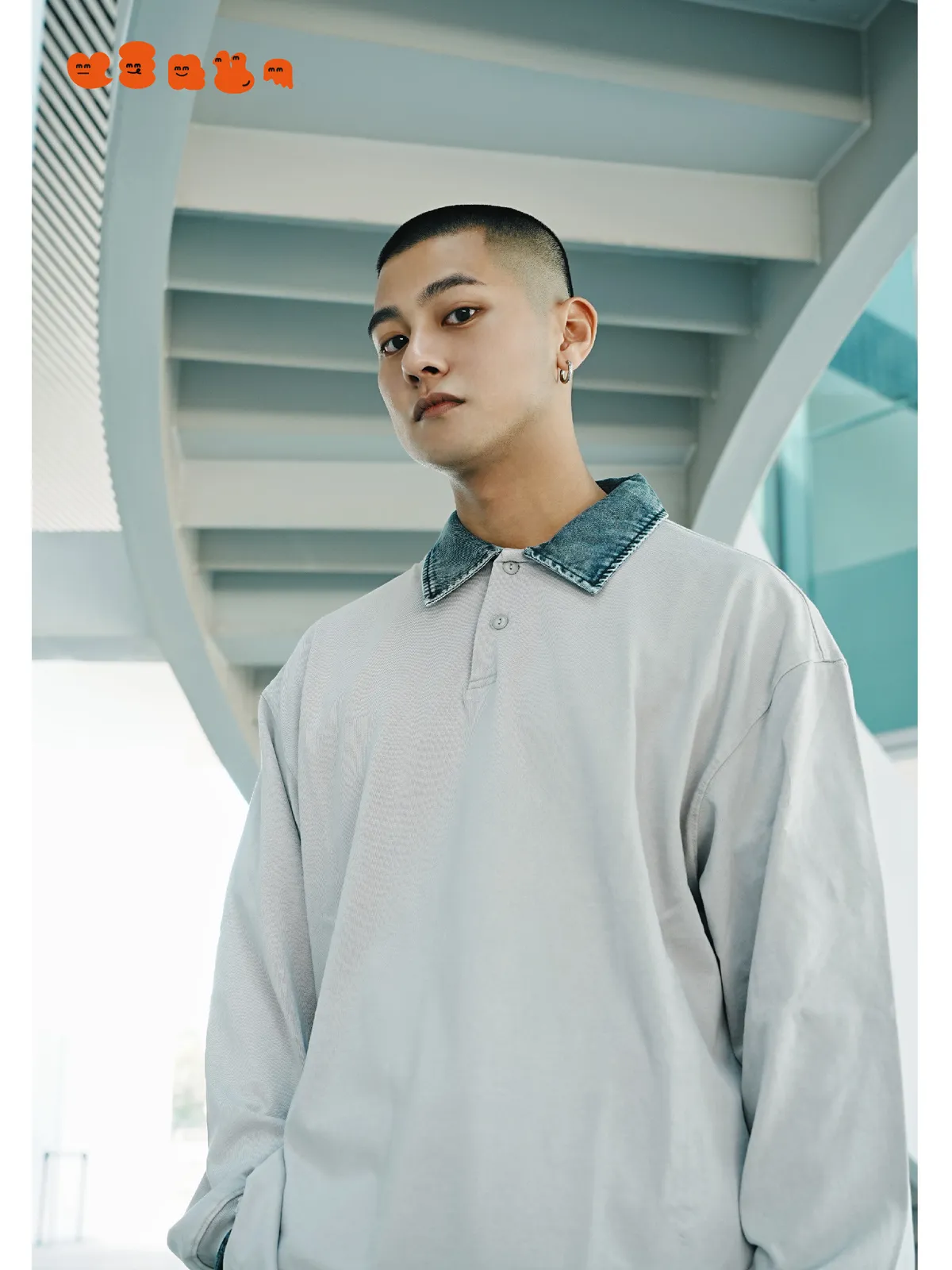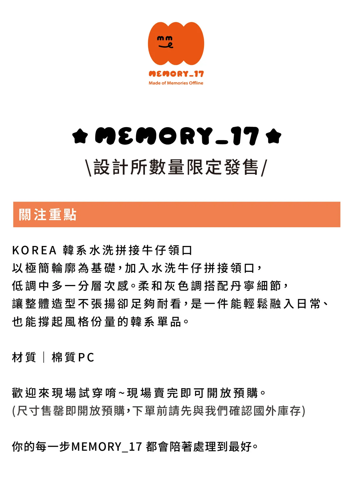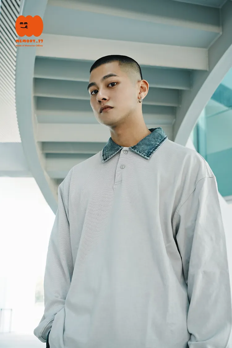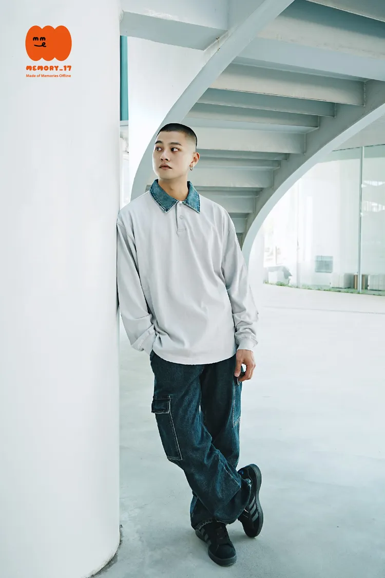 水洗牛仔拼接領口設計,細節提升整體質感