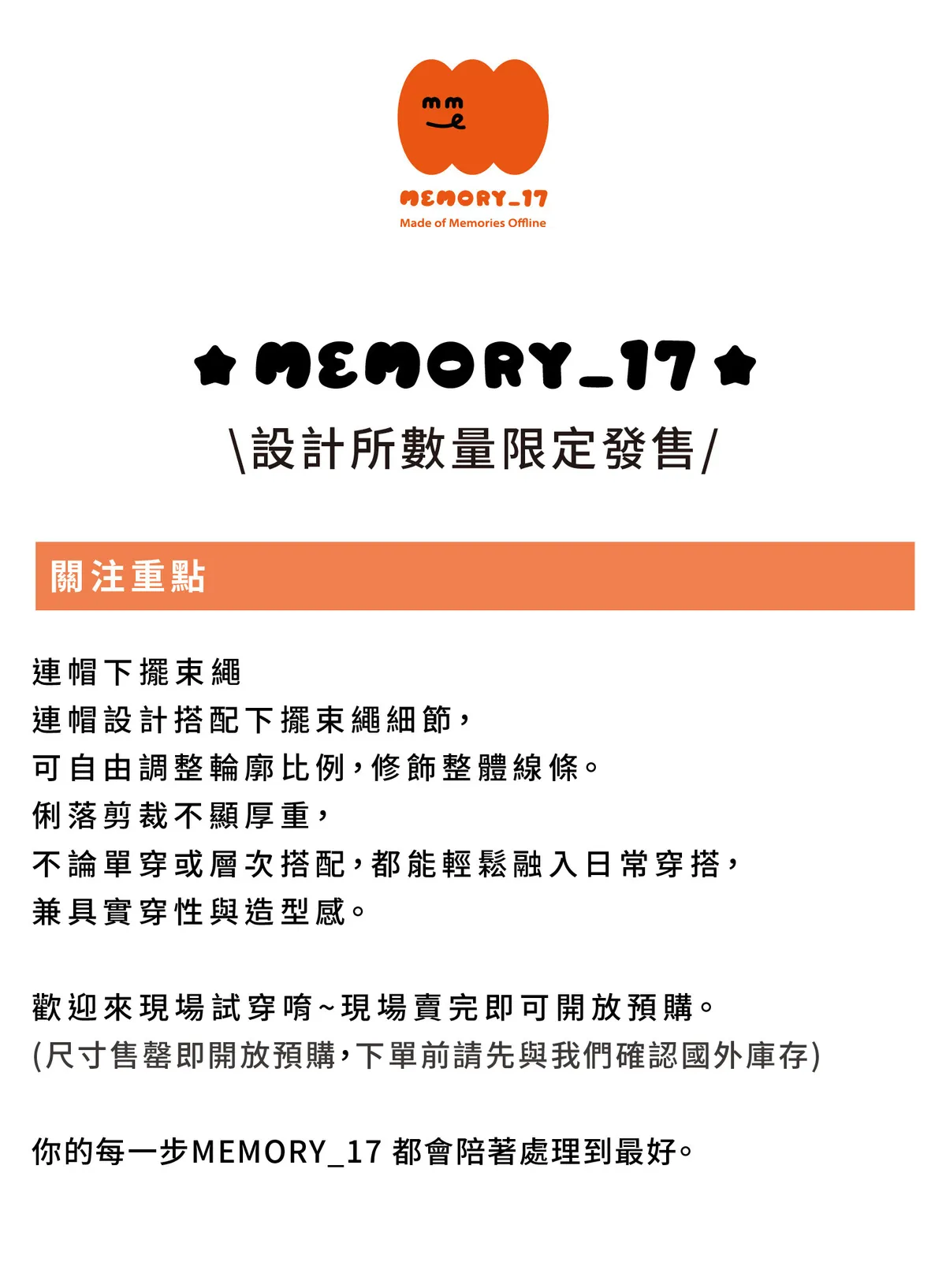 ⦁ 下擺束繩設計,可自由調整輪廓比例