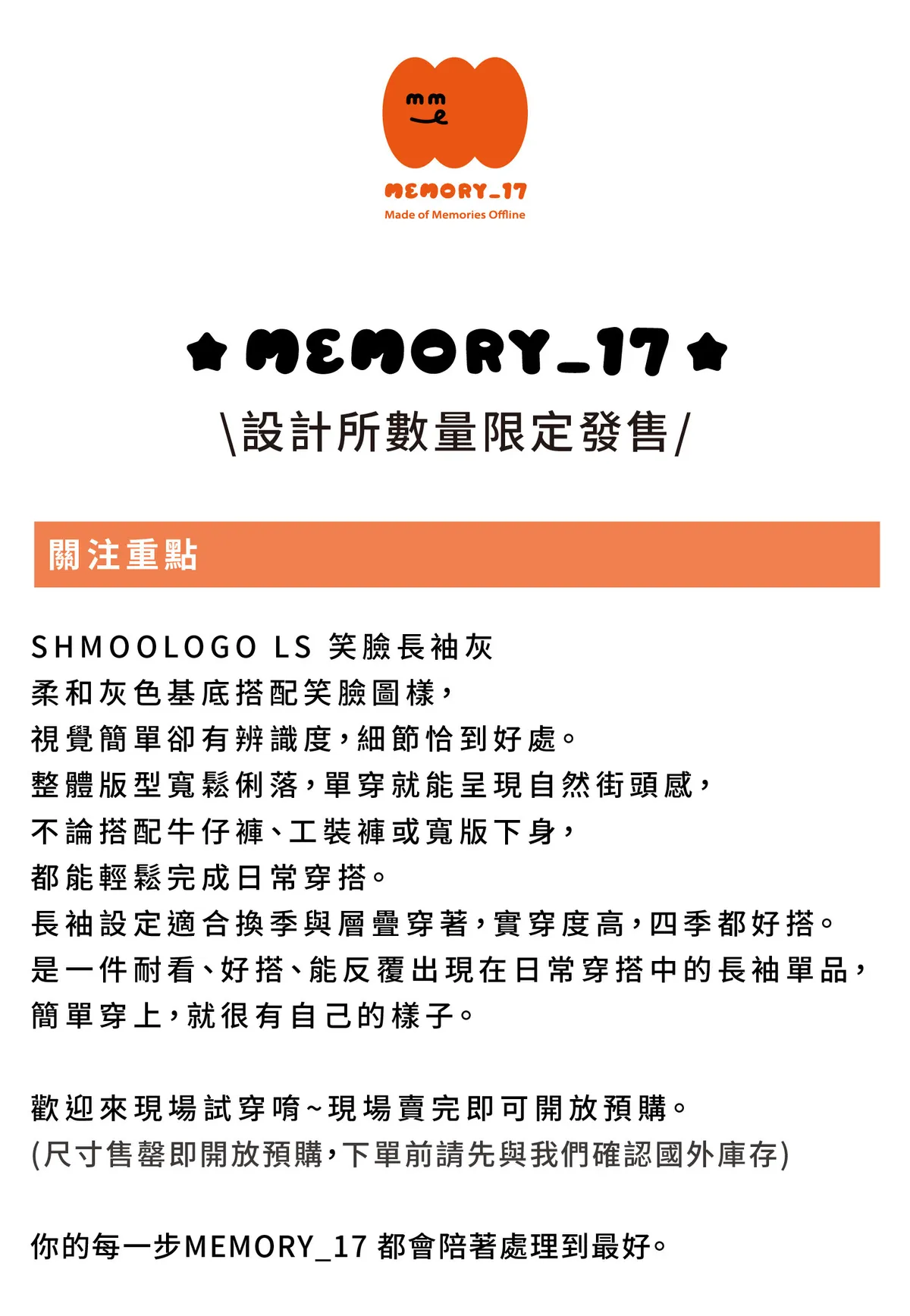 【SHMOOLOGO LS TEE 】笑臉長袖灰