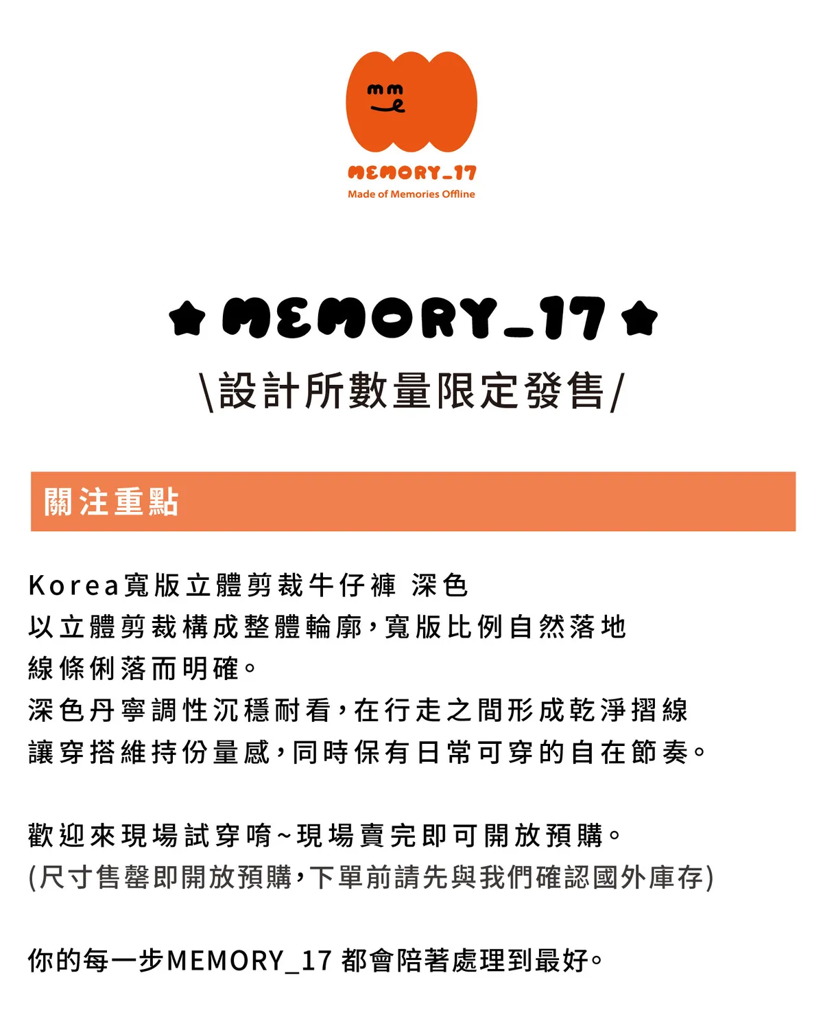 【WIDE STRUCTURED DENIM】Korea 寬版立體剪裁牛仔褲 深色