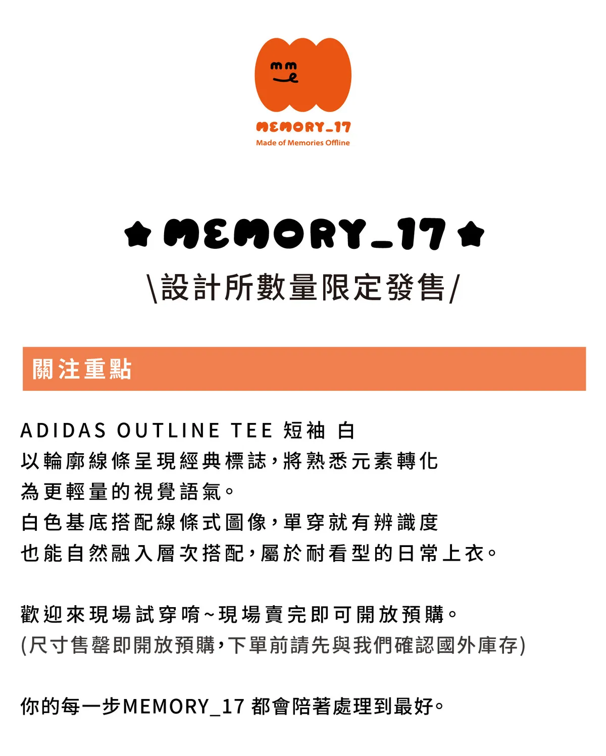 【OUTLINE TEE】Adidas OUTLINE TEE 短袖白