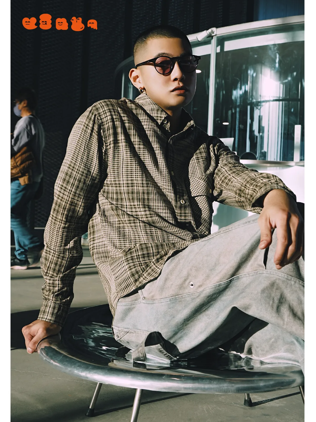 【CHECK LONG SLEEVE SHIRT】korea 格子長袖襯衫 咖褐