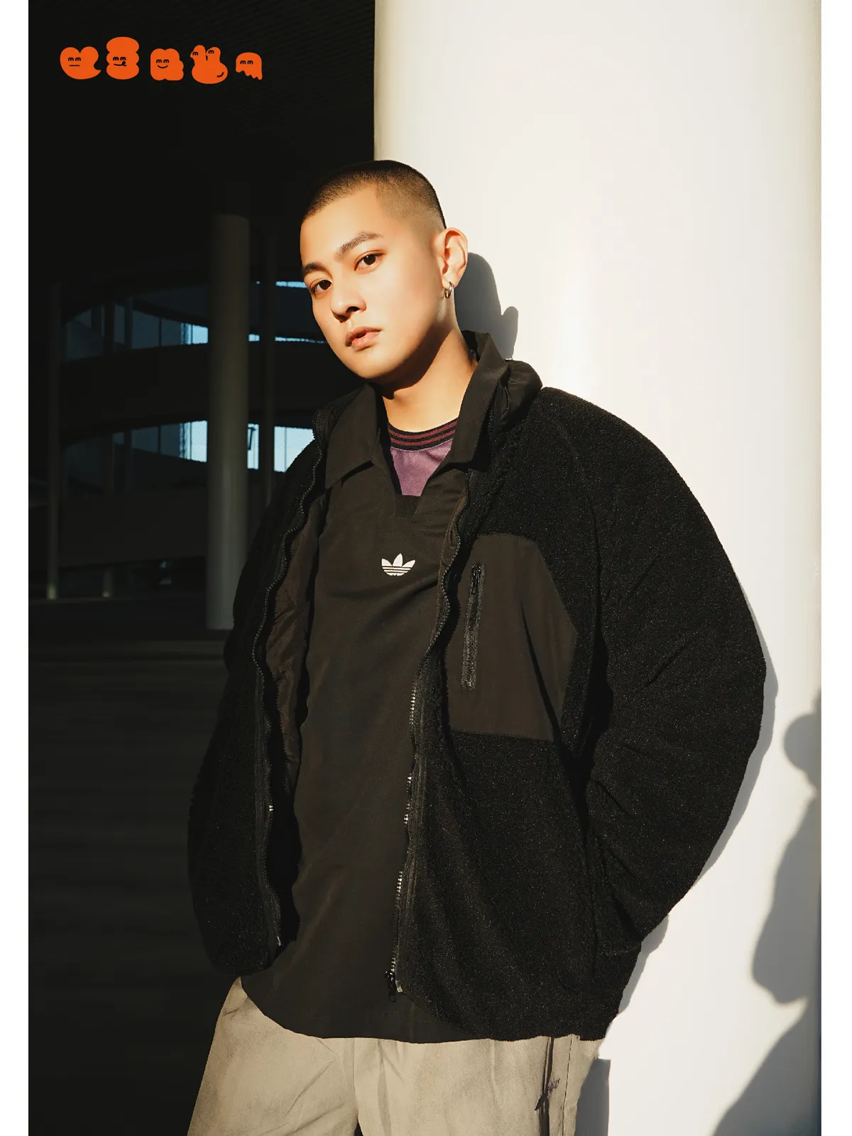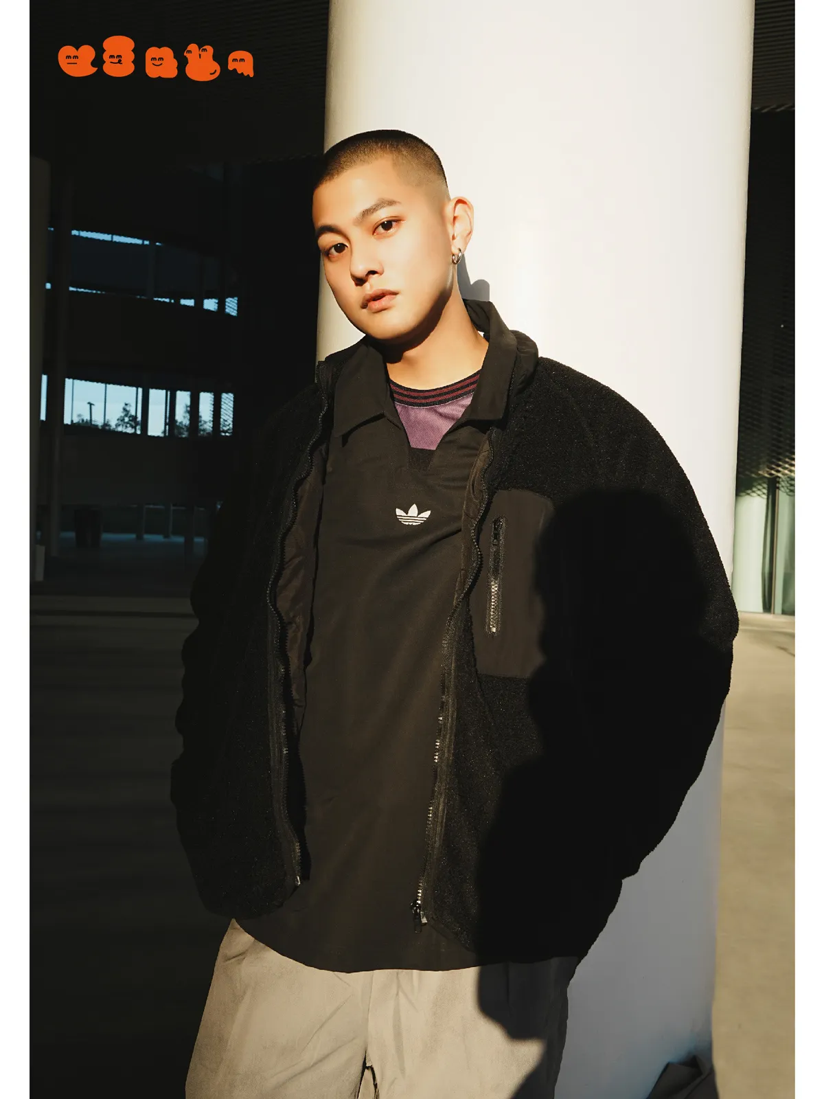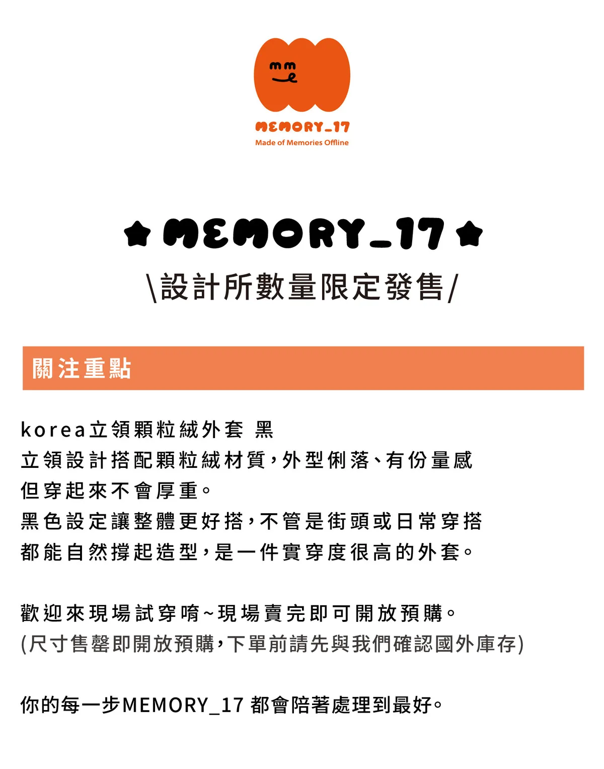 【STAND COLLAR FLEECE JACKET】korea立領顆粒絨外套 黑