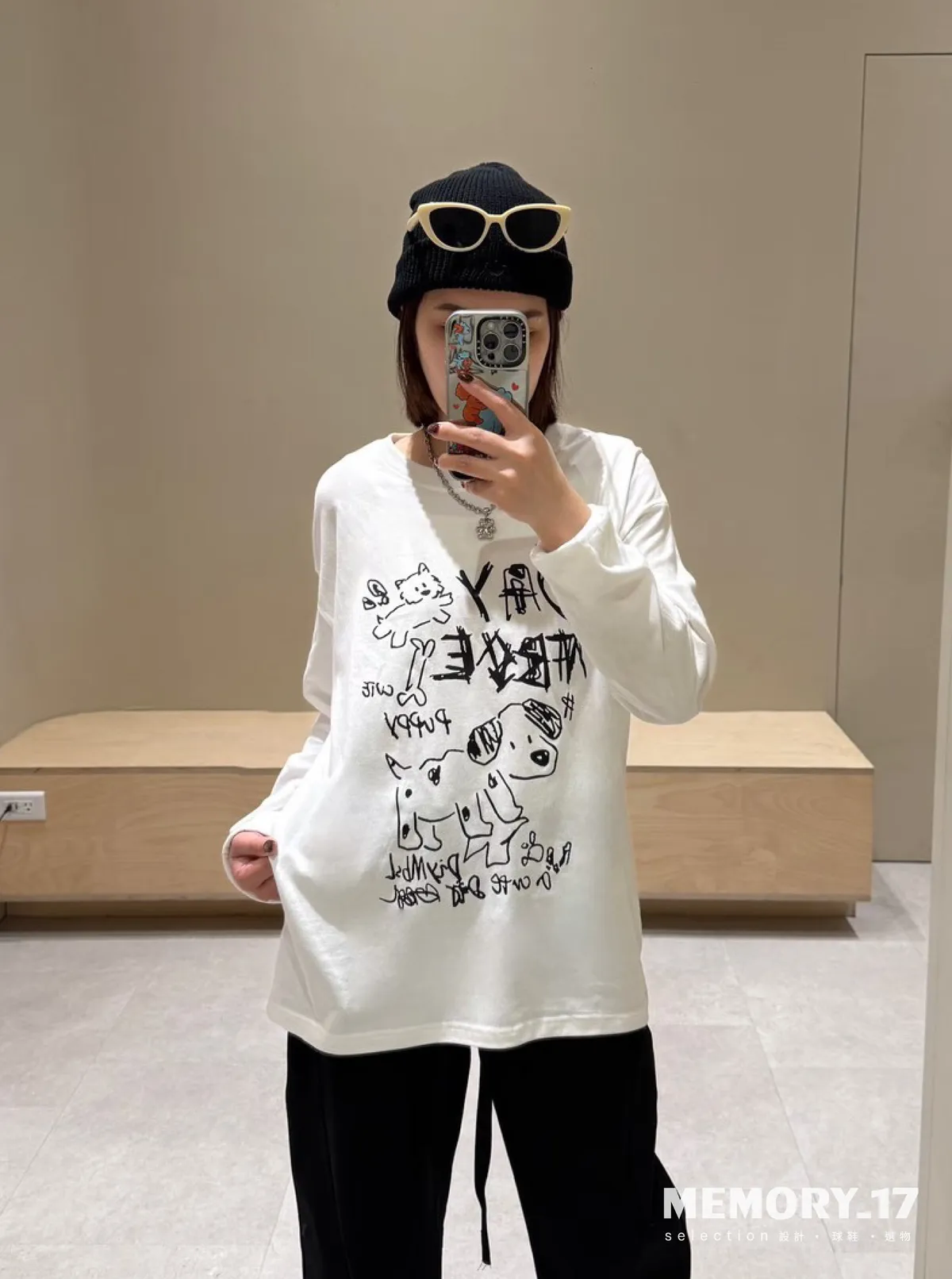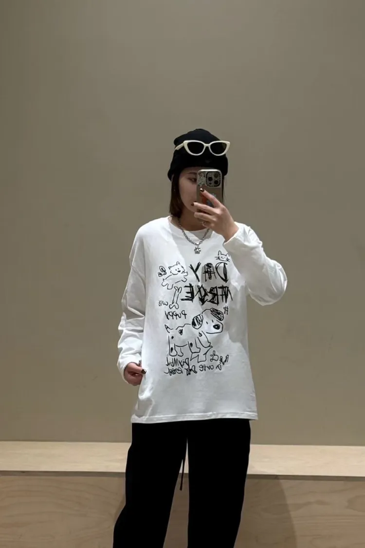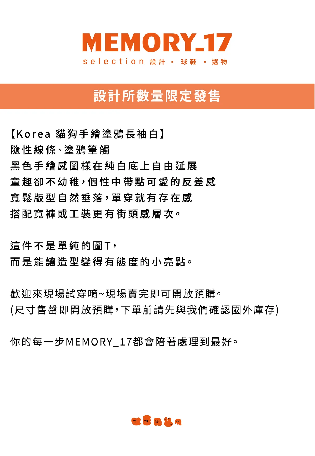 【CAT & DOG DOODLE LS TEE】貓狗手繪塗鴉長袖 白